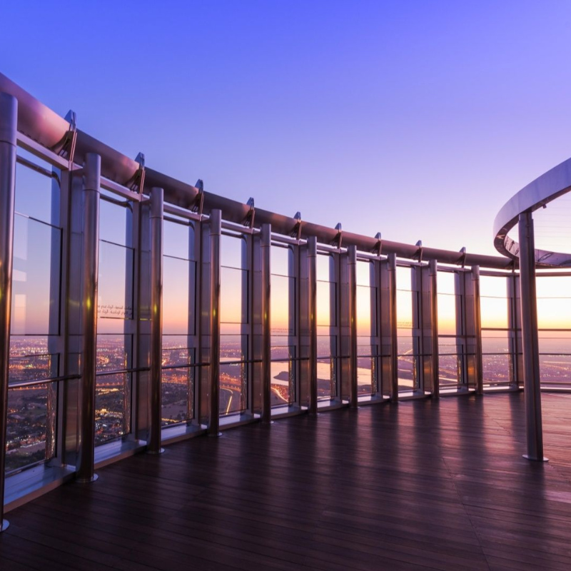 These observation decks offer a stunning panoramic view of Dubai’s skyline, the Arabian Gulf, and the surrounding desert. Guests can experience high-speed elevators, interactive displays, and spacious viewing areas designed for unforgettable photo opportunities.