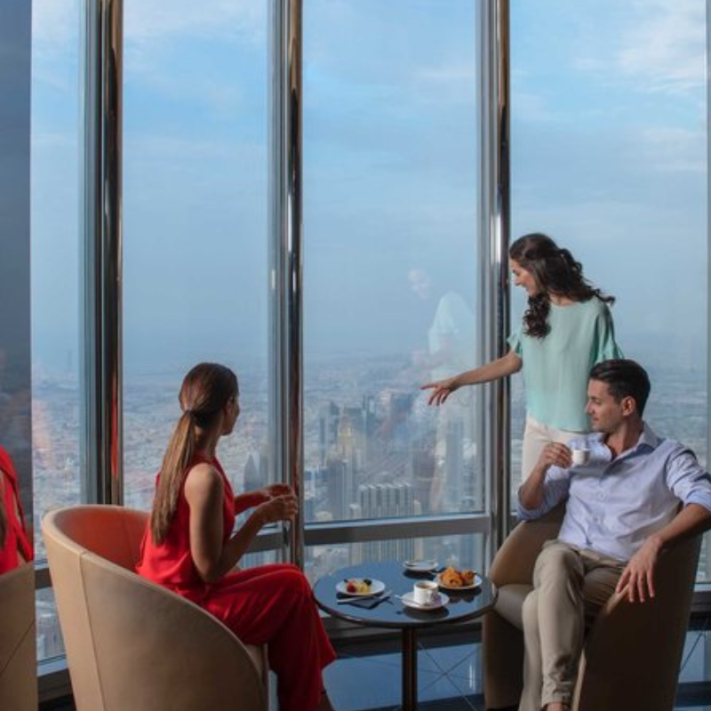 Experience the world’s highest lounge at 585 meters above ground. Located on the 154th floor of Burj Khalifa, this exclusive destination offers: