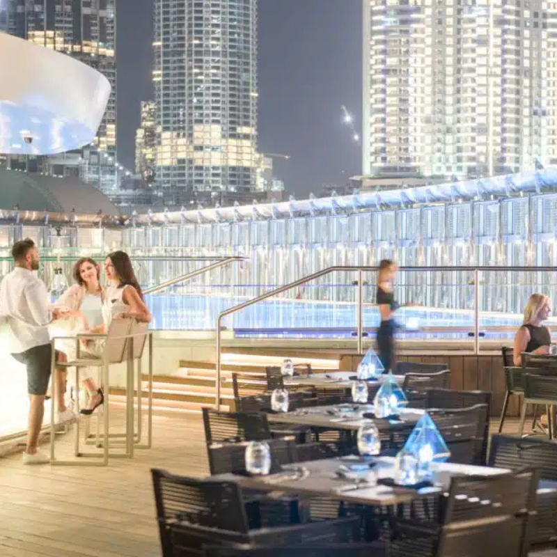 Alfresco Dining: Enjoy your meal in a sophisticated outdoor setting overlooking the Dubai Fountain and the majestic Burj Khalifa.