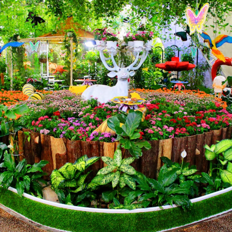 It is home to thousands of beautiful butterflies from different species, flying freely inside climate-controlled domes filled with colorful flowers and greenery.