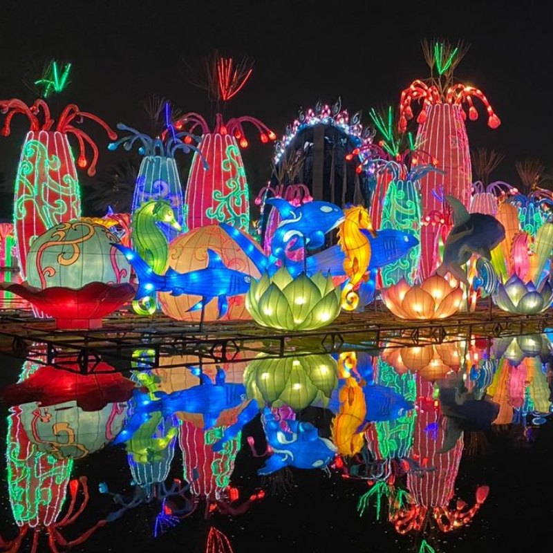 Visitors can explore a magical world of glowing light installations, colorful sculptures, and themed displays that create an unforgettable evening atmosphere.