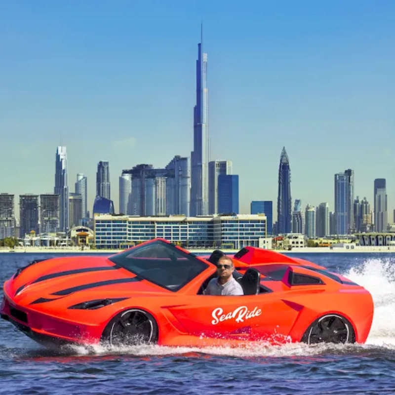 Designed to look like a luxury supercar, this powerful water vehicle allows participants to drive across the sea while enjoying breathtaking coastal views and iconic landmarks.