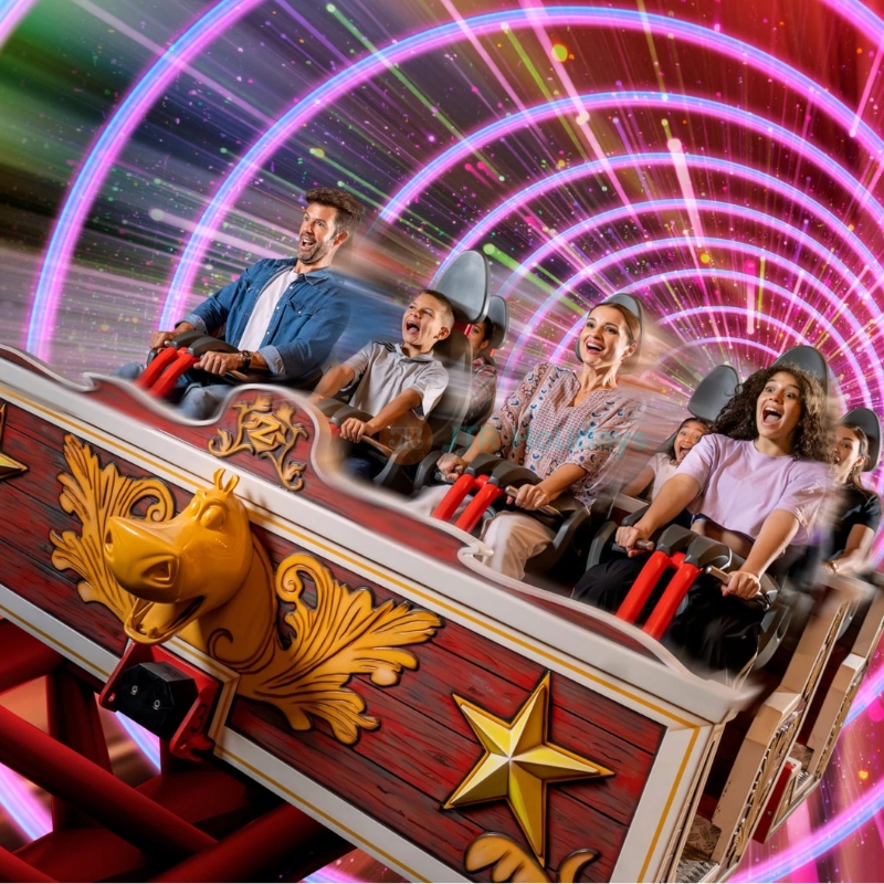 At Motiongate™ Dubai, guests can experience Hollywood-inspired attractions based on famous studios such as DreamWorks Animation, Columbia Pictures, and Lionsgate. The park features thrilling roller coasters, immersive 4D experiences, and family-friendly rides inspired by movies like The Hunger Games, Shrek, Madagascar, and Ghostbusters.